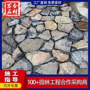 青灰色碎拼石板岩 不规则毛石片石仿古砖 古建园路装饰冰裂纹