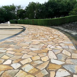 黄色碎拼石 米黄色石材贴面铺路石 虎皮黄板岩 轩宇石材